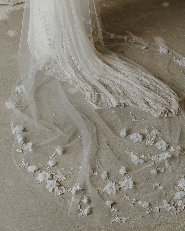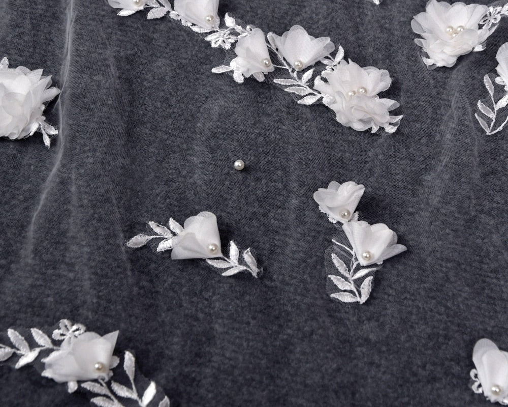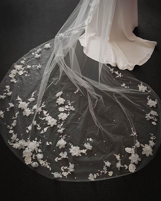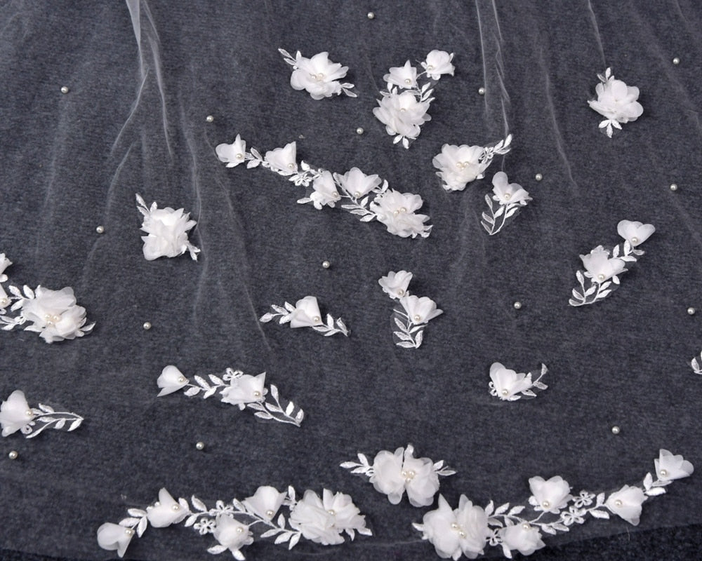 3D Flowers Wedding Veil with Pearls Bridal Veils Long Train Bridal Shower 3 Meter