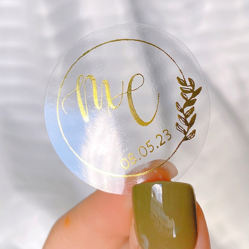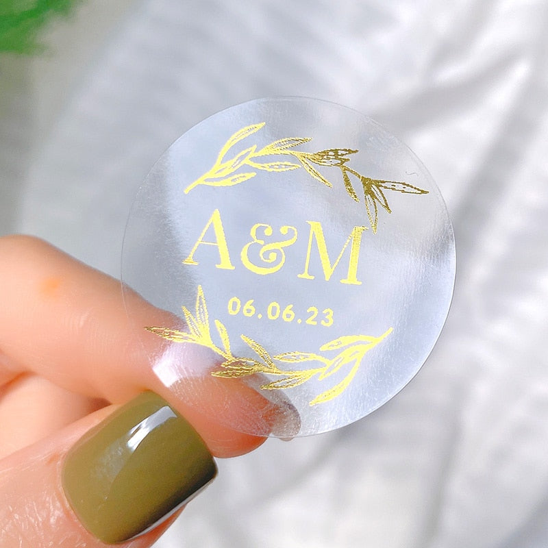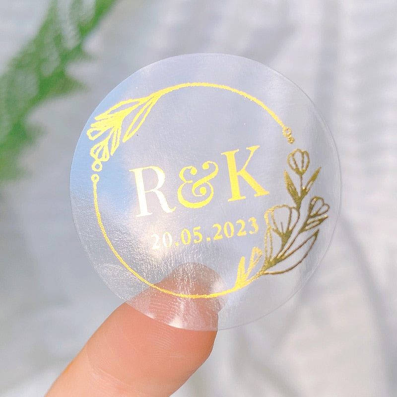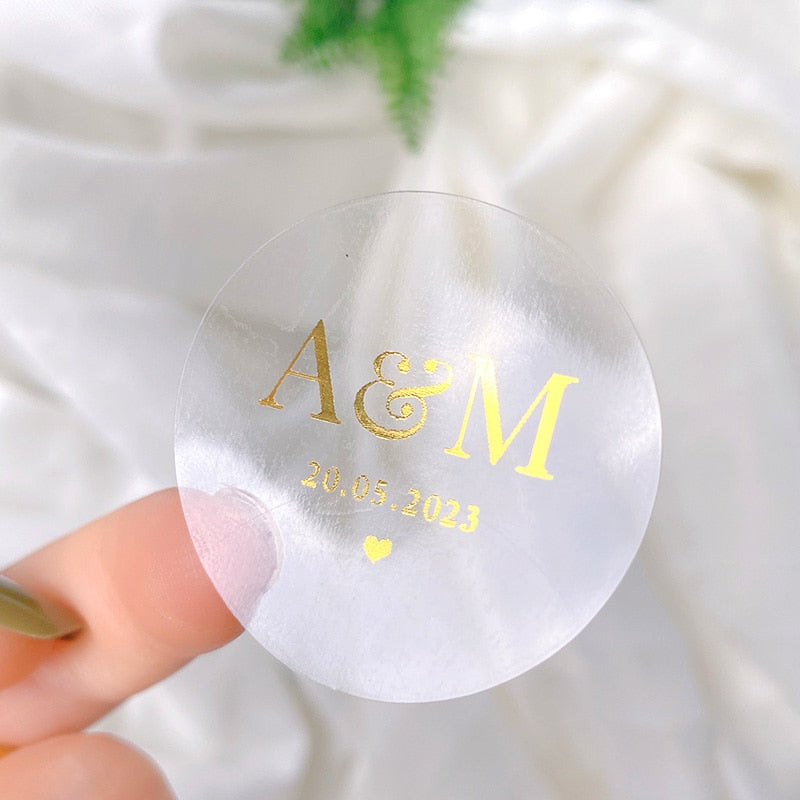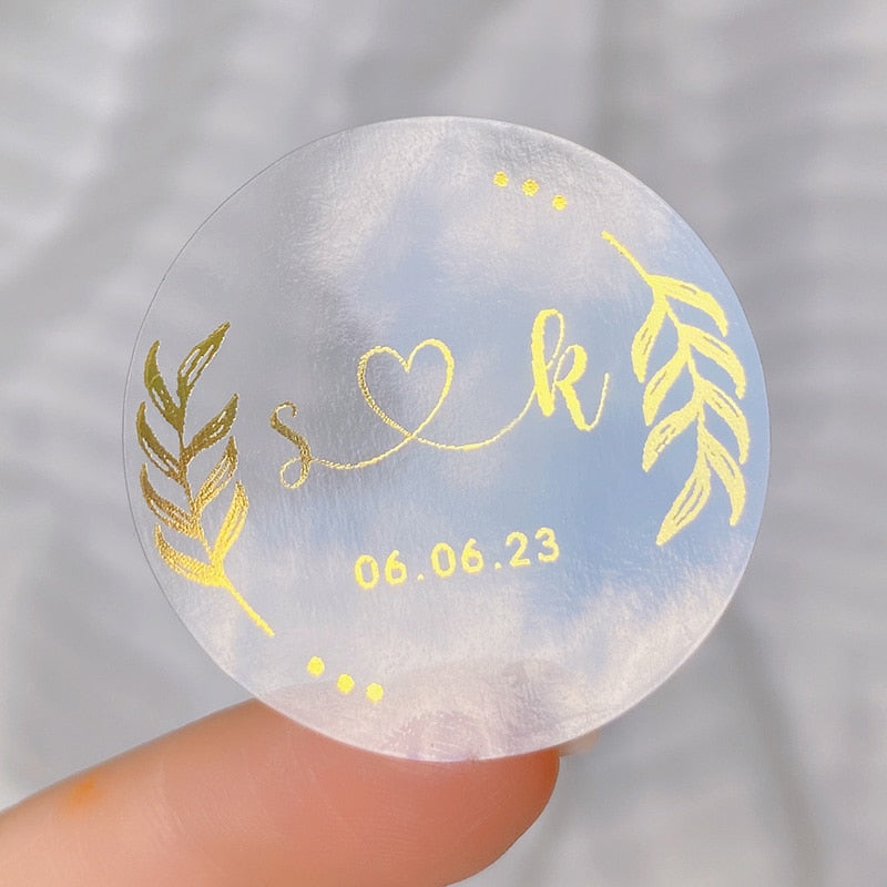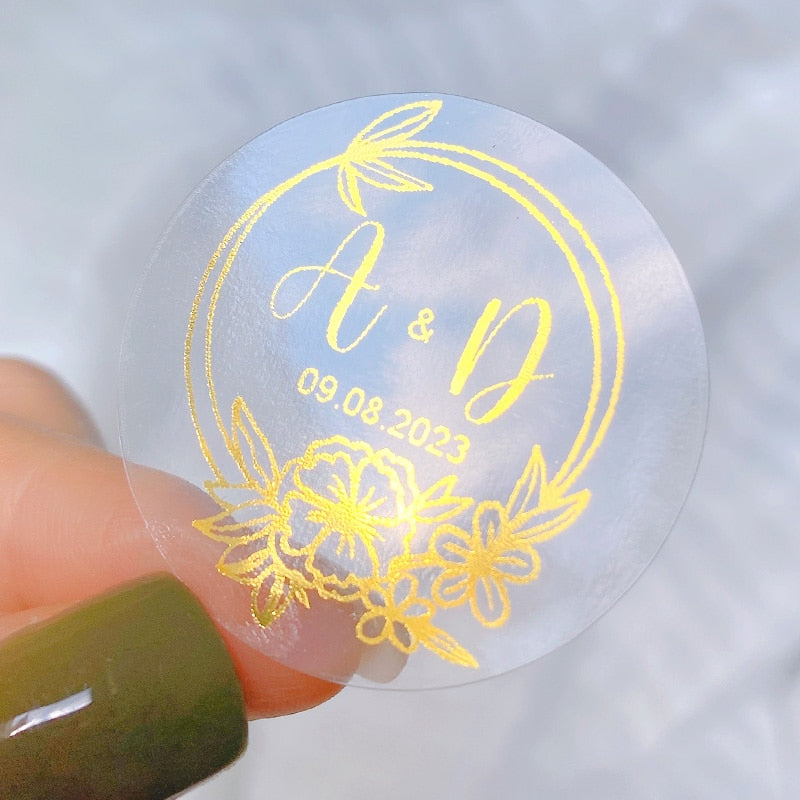 Personalized 4cm~7cm Gold Foil Wedding Favor Stickers,PET Clear Labels,Round Circle Stickers