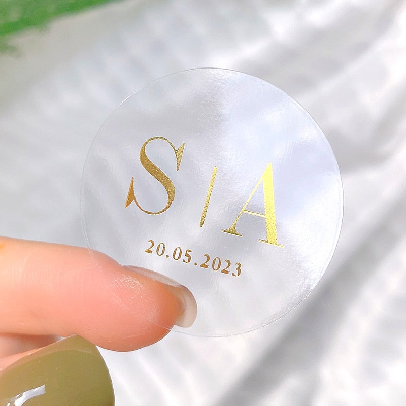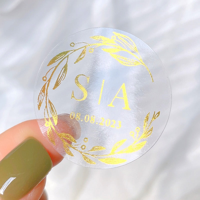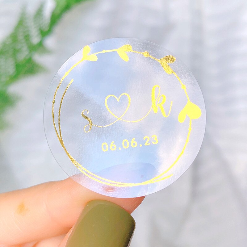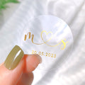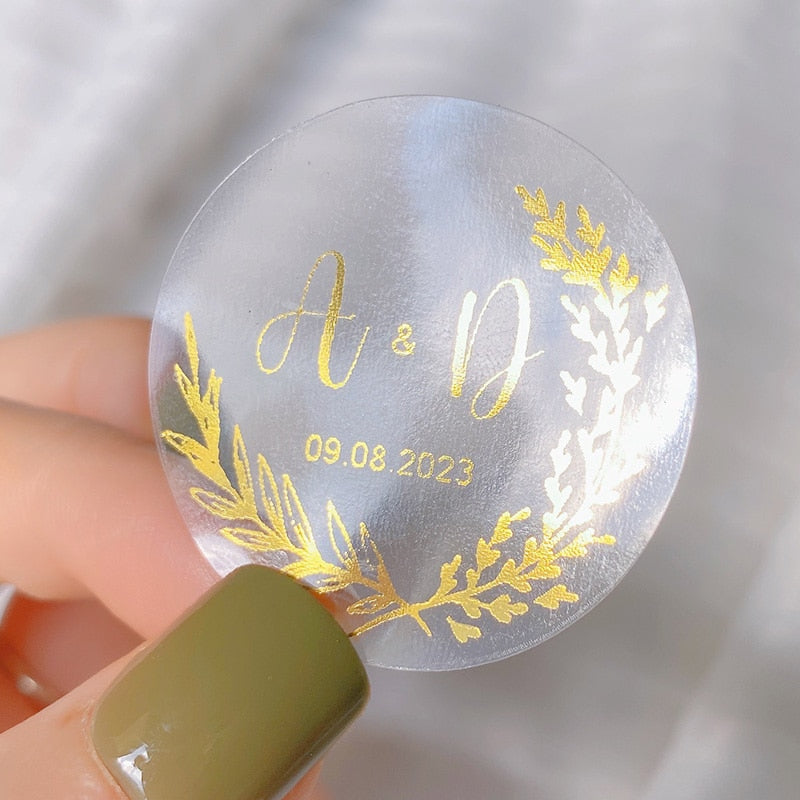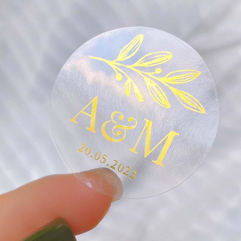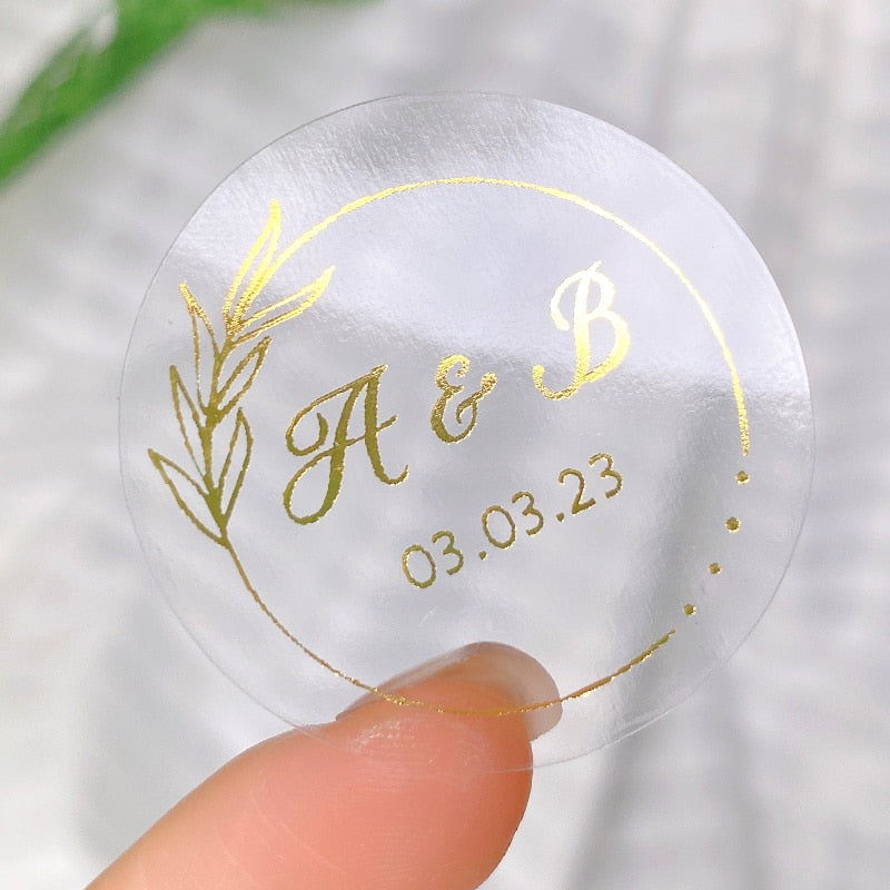 Personalized 4cm~7cm Gold Foil Wedding Favor Stickers,PET Clear Labels,Round Circle Stickers