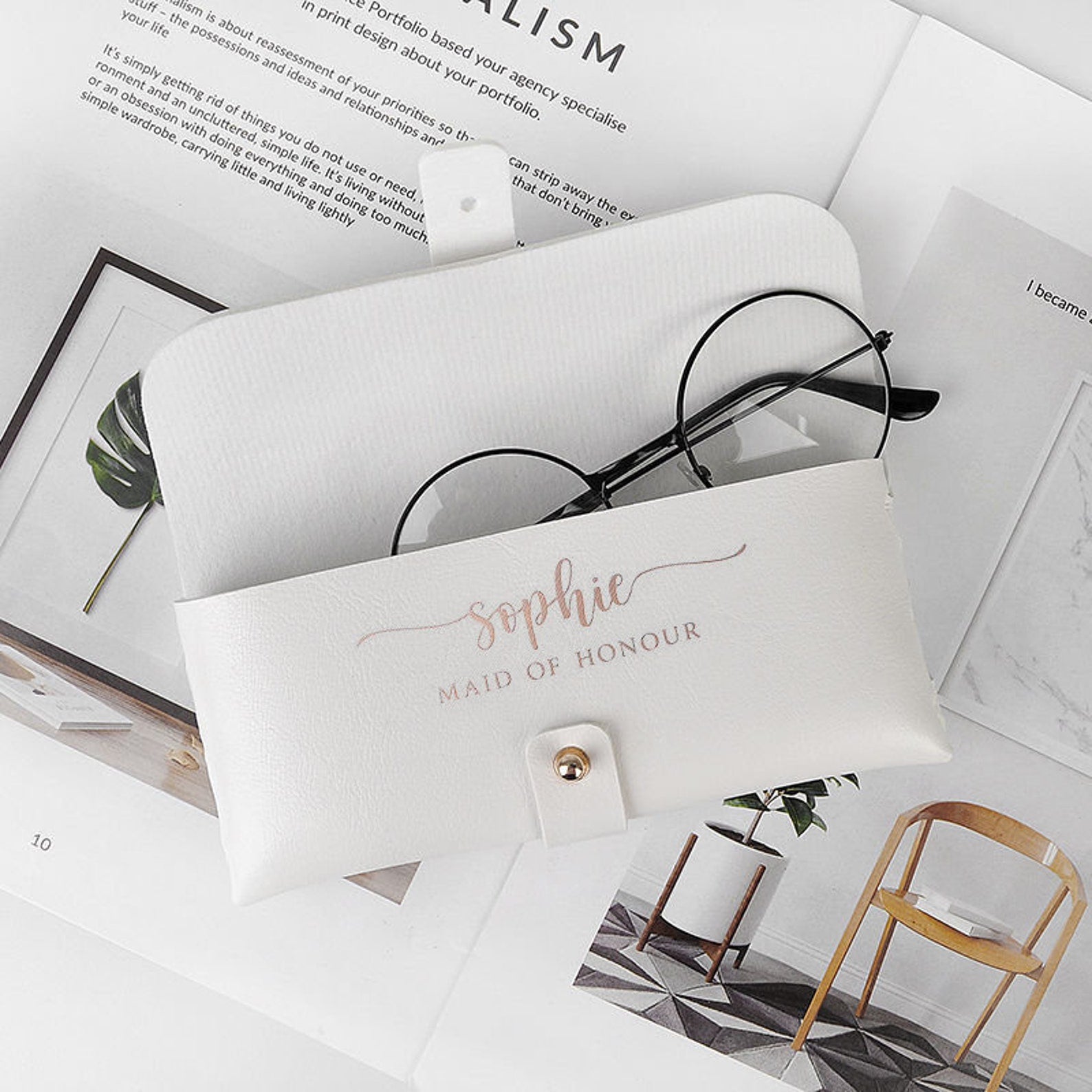 Personalized Handmade Glasses Case Wedding Bridesmaid Gifts Custom Soft Leather Case Honeymoon Birthday Bride to be Travel Gifts