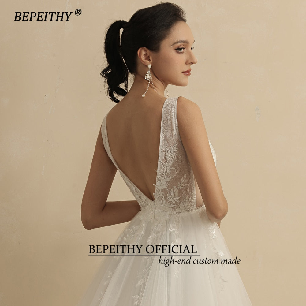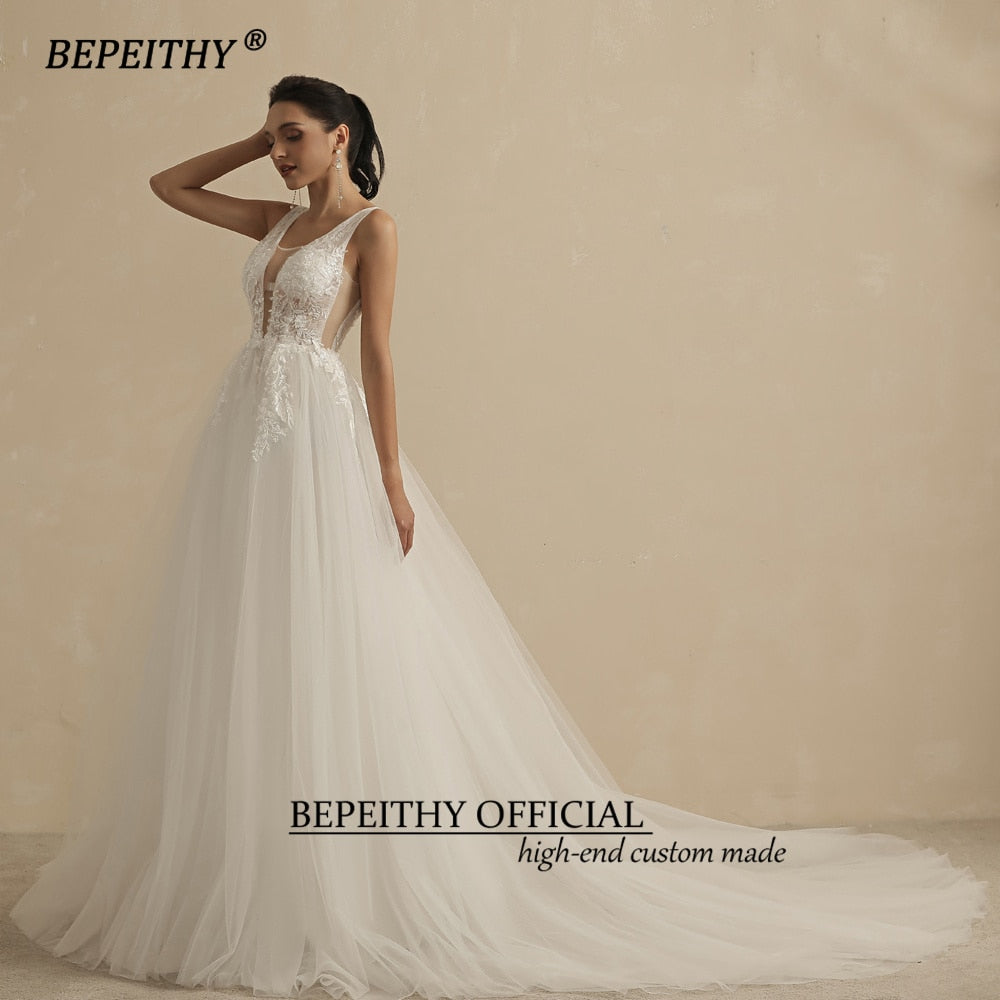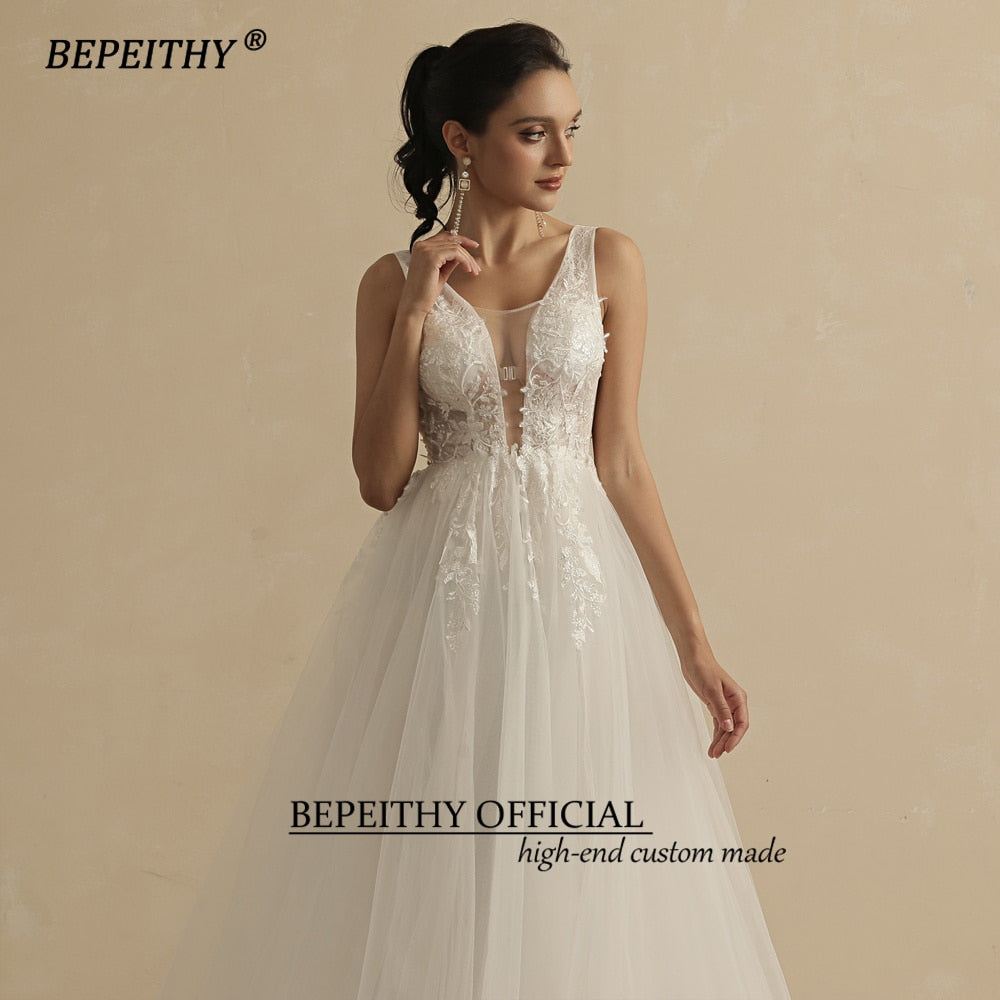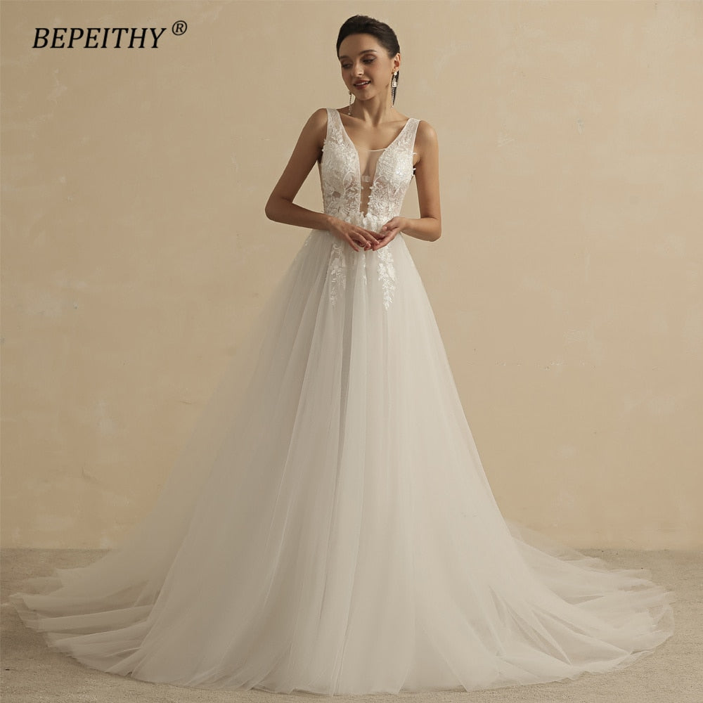 Sexy Deep V Neck Wedding Dresses For Women Bride A Line Open Back Boho Bridal Party Gown Sleeveless