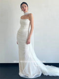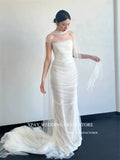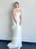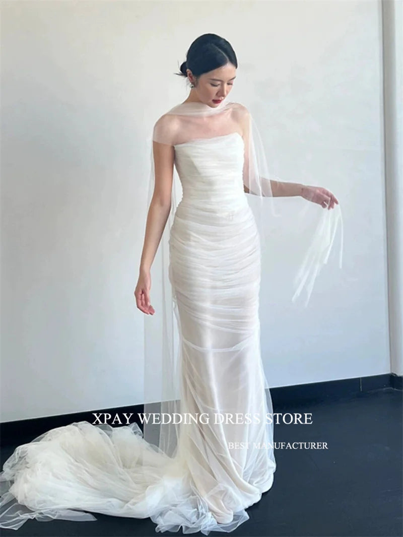 Strapless Mermaid Korea Wedding Dresses Photoshoot Soft Tulle Scarf Floor Length Bridal Gowns Custom Made Elegant